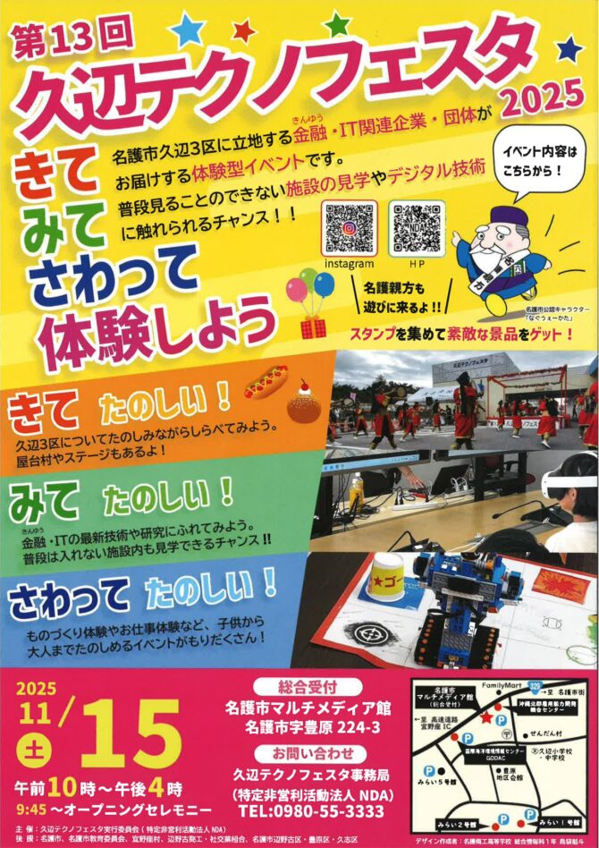 名護市の東海岸に位置する久辺地区に集積の金融・IT関連企業・団体がお届けする体験型イベント!